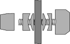 Крепеж колодки состоит из четырех алюминиевых прокладок, оси и гайки. Прокладки с краев, которые вы видите на фотографии, можно менять местами: на новой колодке снаружи ставится толстая прокладка, а на стершейся колодке - толстую нужно ставить внутрь. Две средние обеспечивают широкий диапазон регулировки.