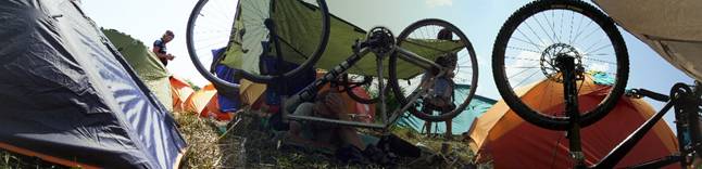 Самое главное задание третьего дня это не сгореть. Умники веранду устроили с велосипедами и палатками. Я оттуда попробовал panoramic view снять. Стыковка слева не совсем удачно - зато получилось в итоге немножко кубизм. Сравните установку сами ( или скажи что я страдаю от солнечного удара).