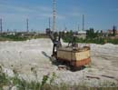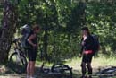 Далее мы скатались к песчаному карьеру, где я надеялся обнаружить купалку - фигу, купалка там разве что пылевая: ветер с карьера несет очень мелкую песчаную пыль. Покатались по местным дорогам. Там песок и полная жопа в сухую погоду, но, после многочисленных дождей еще не успели накатать песчаных луж, так что ехалось почти всем в свое удовольствие. Скупили в магазине всю воду, потому что из открытых водоемов там невкусно или вредно пить и покрутили к купалке.