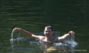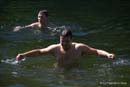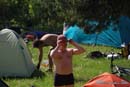 Первая купалка оказалась вполне отстойной, так что решили крутануть до следующего карьера. Вот там-то мы порадовались: кристально-чистая вода (на мой взгляд прозрачность до 5-6 метров), песок, на берегах чистота.. Полная фантастика, короче говоря. Я с местными ребятами пообщался - сказали, что в том году пригнали узбеков и с карьера вывезли две газели мусора. Ессно после себя мы оставили все чистеньким, как обычно.