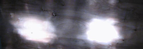 Первые "испытуемые" - уже упоминались в одном из моих обзоров. Левое пятно - Ellipsoid, правое - Cubelight, освещают лист фанеры.