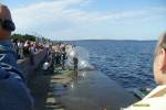 Засовывают чела в шар и спускают в воду
