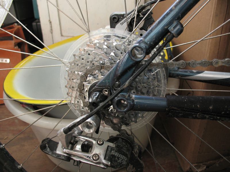 Марка велосипеда Specialized Rockhopper. Фотографий задней части велосипеда сделать, конечно же, не догадался, а пишу с работы. Есть такая картинка http://www.specialized.ru/img/Images/224--RH_comp_dsc_CandyRed_9.jpg.