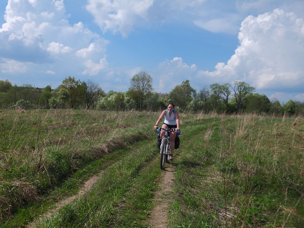 Катимся к мосту через Ворю. Настя.
