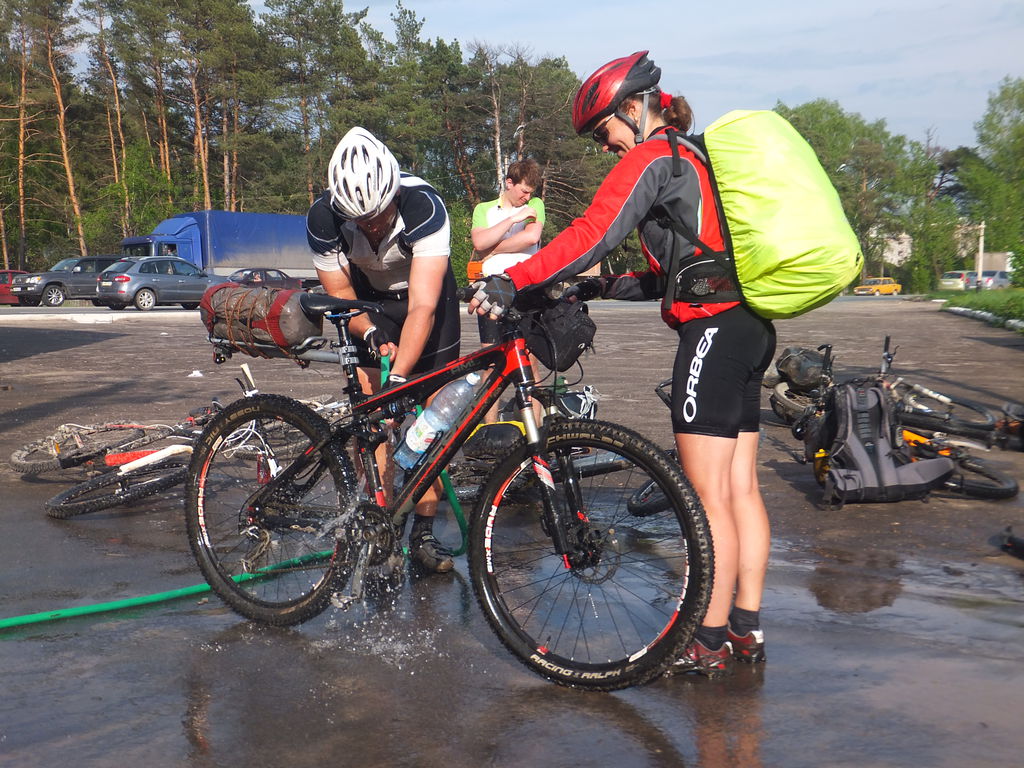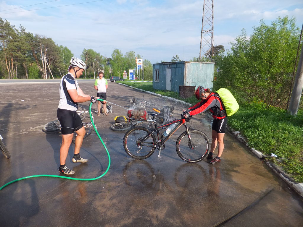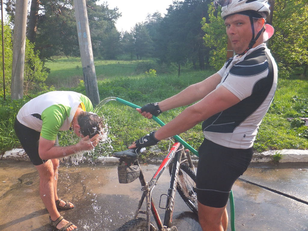 Моемся перед въездом в Калугу.