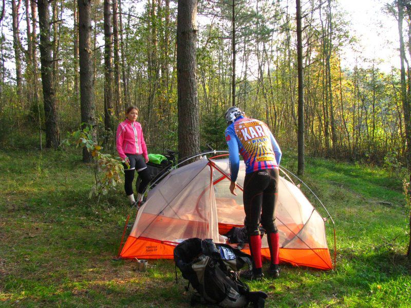 я не на байке, слезла и спала на рюкзаке!